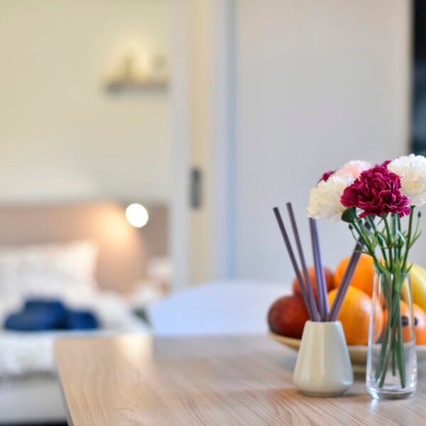Spavaće sobe pružaju privatnost, dok je zajednički dio otvoren i ugodan za druženje, uz dodatni ležaj na kauču na rasklapanje.